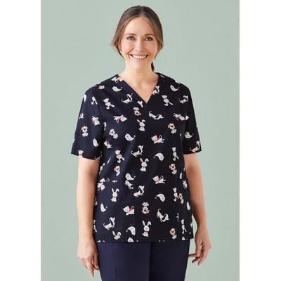 Womens Easter V-Neck Short Sleeve Scrub Top
