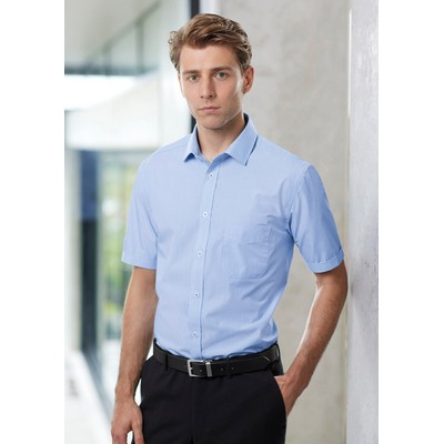 Fabric: Easy Care 65% Polyester, 35% Cotton. Yarn dyed fine stripe fabric. UPF rating - Very Good.