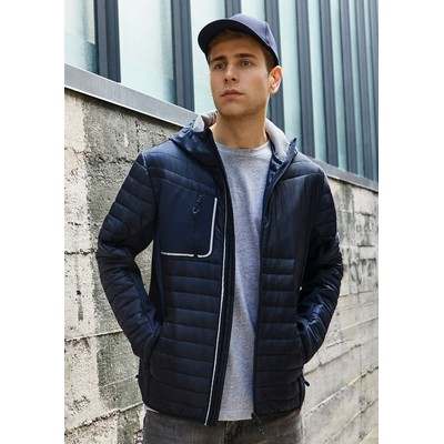 Features: Insulated quilting on body and sleeve keeps you warm. Bonded fleece stretch softshell panels and hood. Media chest pocket with reflective trim detail. Full zip with reflective trim and rubberized toggles. Zippered pockets to secure belongings. Clear non-quilted space for LHC decoration.