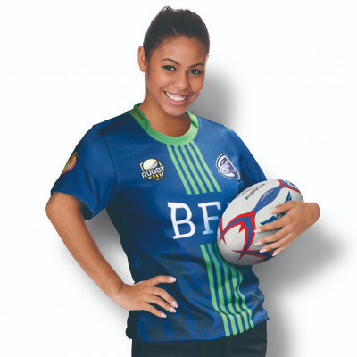 Durable Womens Rugby T-shirt manufactured from 280gsm, 100% polyester interlock. Moisture-wicking and breathable material, with a twill-taped finish, is designed specifically for Rugby. The custom artwork is PMS matched with personalisation free of charge. A production lead time of 35 working days applies to this product.
